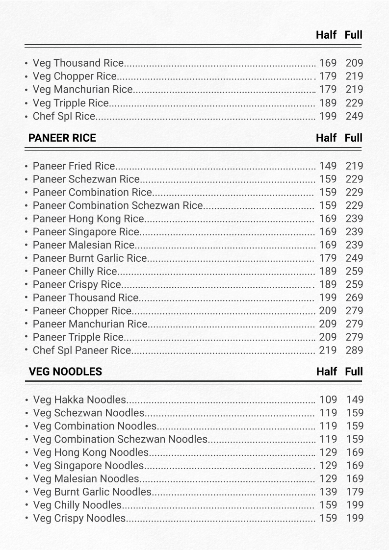 - Egg Gravies: Delight in flavors like Egg Manchurian and Egg Hong Kong, starting at just ₹169.